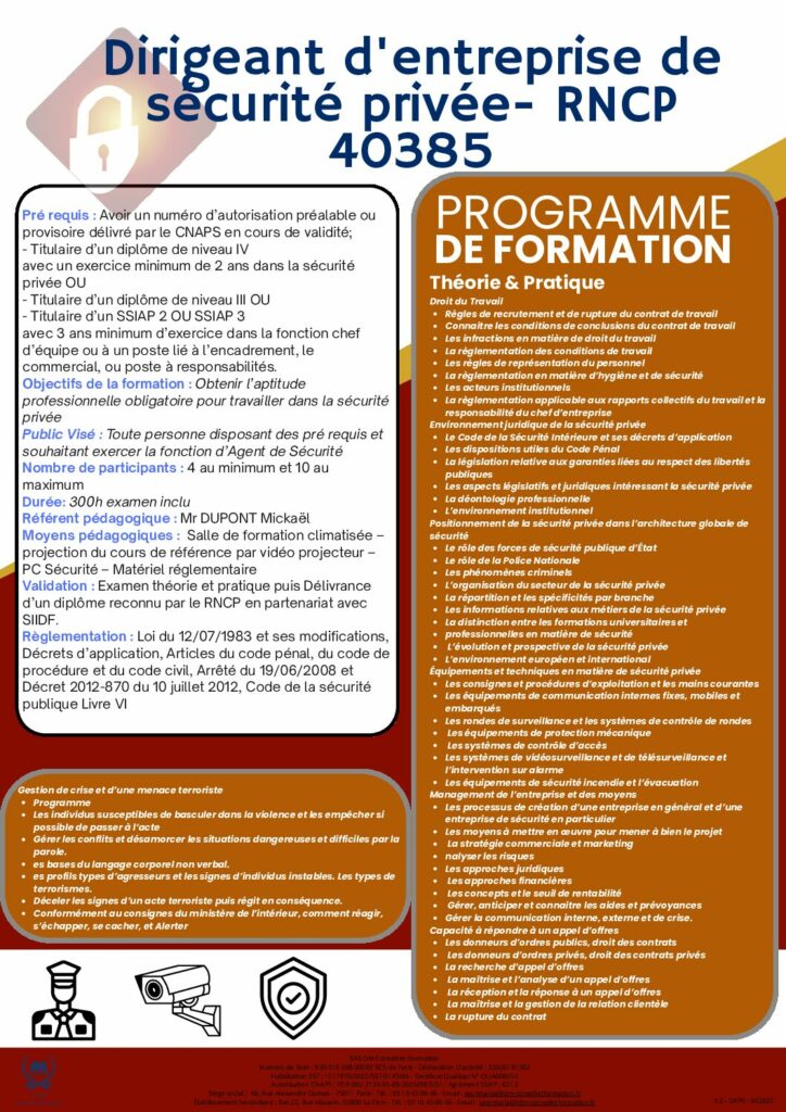 Elle vise à sécuriser la création, la reprise ou le développement d’une entreprise de sécurité privée, tout en professionnalisant la fonction de dirigeant.